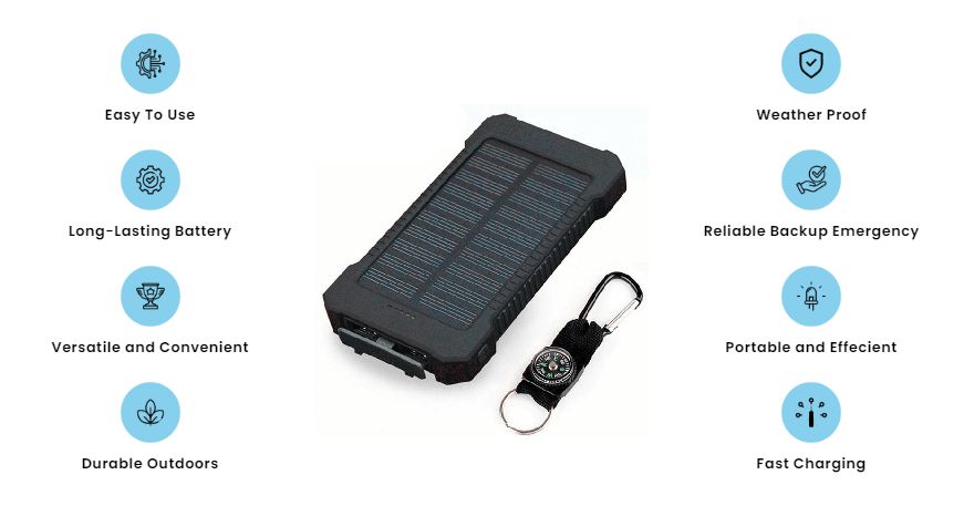 Experience limitless charging potential with our solar power bank. Compact and efficient, it captures sunlight to keep your devices juiced up on the go. Embrace freedom from outlets and enjoy uninterrupted adventures wherever the sun shines. a game-changer in portable charging technology. Say goodbye to the constraints of traditional power banks and embrace the boundless energy of the sun.