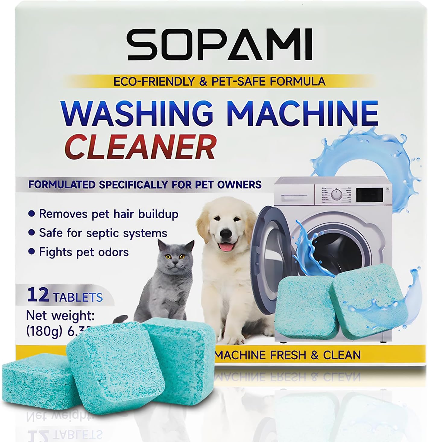 SOPAMI Eco-Friendly Washing Machine Cleaner Fights Pet Odors & Hair Build-Up for Fresh Clean Machines